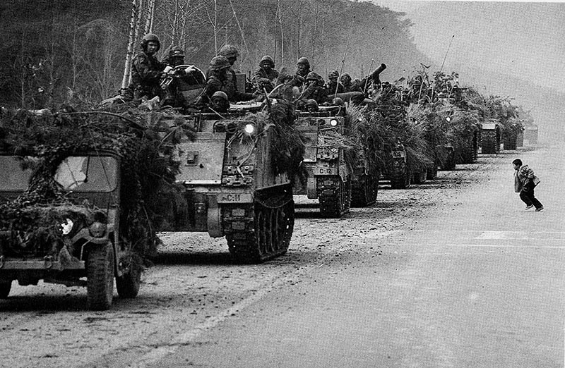 주한미군의 출동훈련. 경기도 이천의 제3번 국도를 이동하는 군인들.